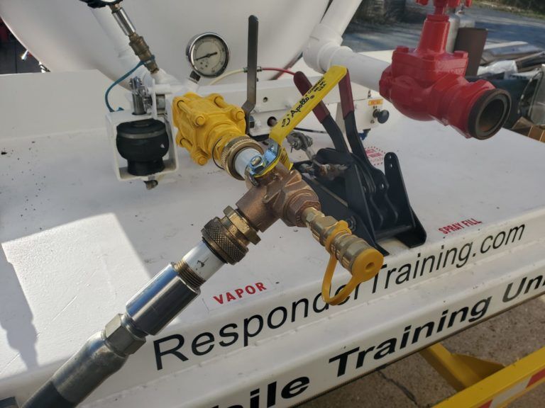 The 3-way valve allows propane to pass through and when done the valve handle can be rotated 90 degrees to allow purge gas to be used.
