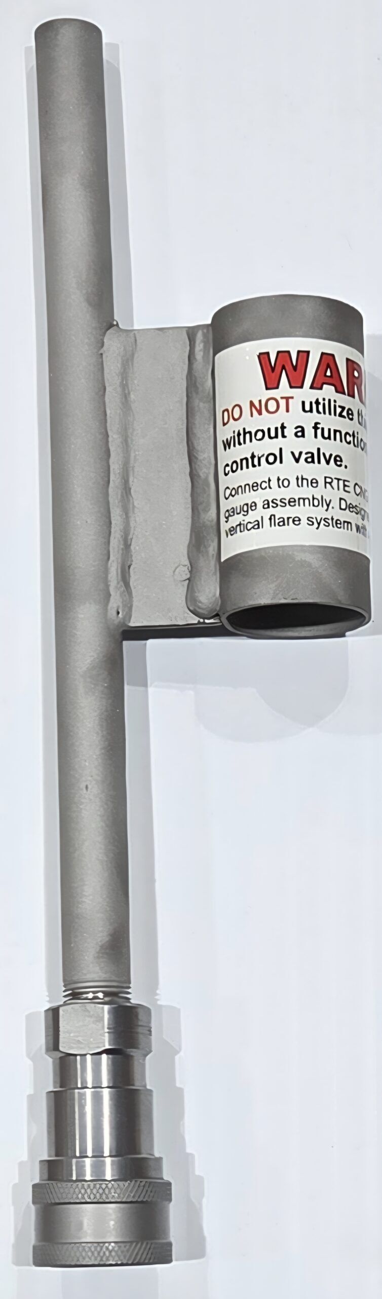 Our Stainless Steel CNG direct vent tip allows full tank pressure to be vented or flared to atmosphere. The Tip must be used with a 1″ pipe flare the utilizes a full quad base covering at least 64 sq. feet.
