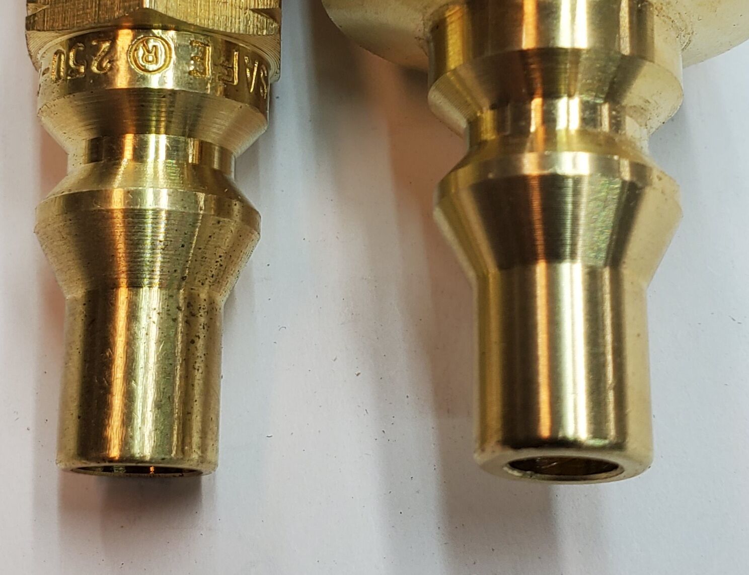 The “LOW” pressure connector can be identified by the thin wall on the male end. It in NOT designed to be used on a system that does not have a regulator.