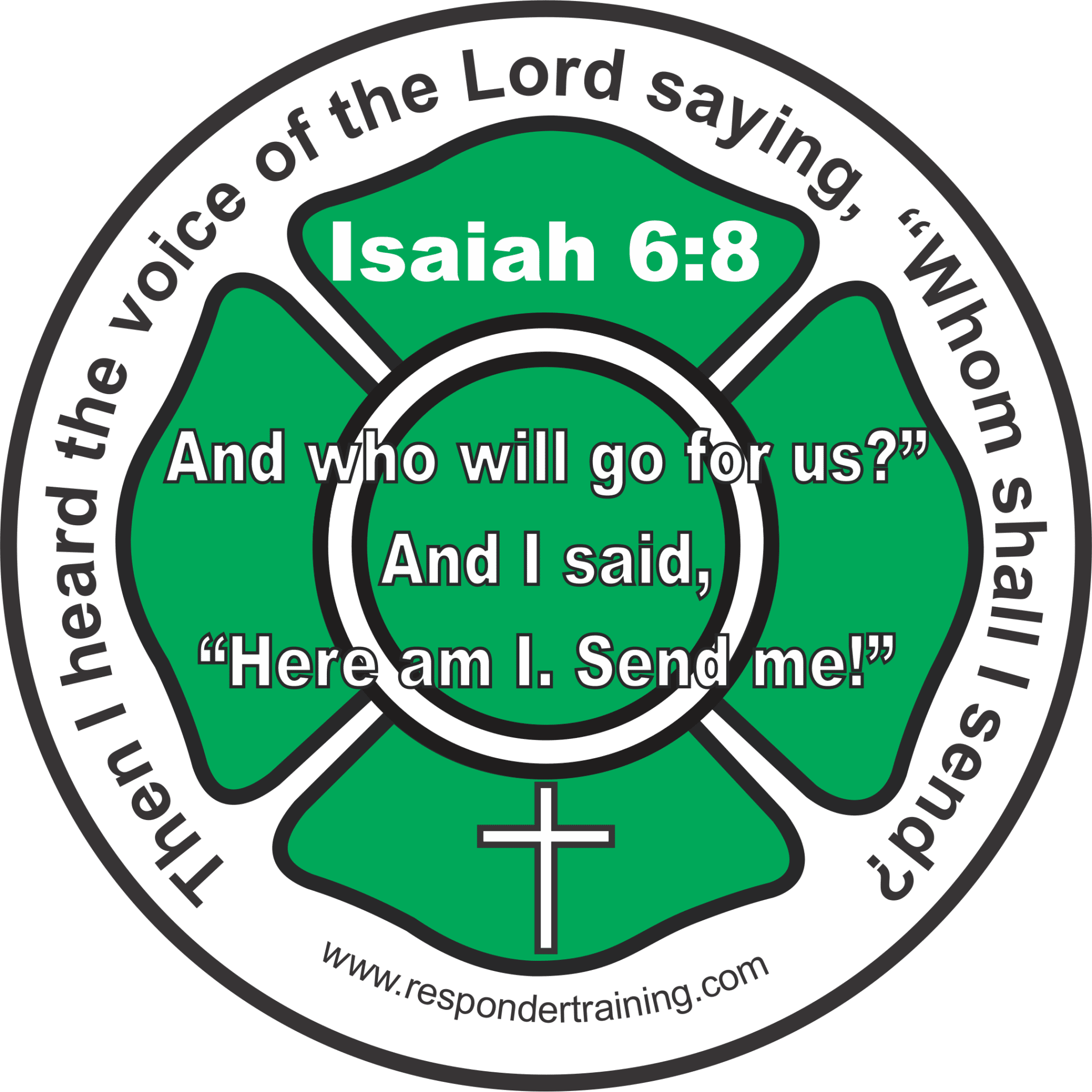 2″ round full color glow in the dark Helmet Sticker – Isaiah 6:8 New International Version (NIV)